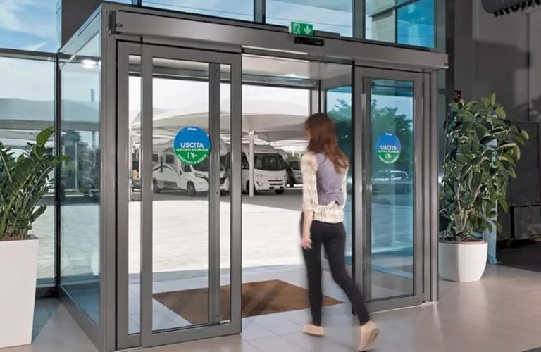 Yaya trafiğinin yoğun olduğu kapılarda sıklıkla kullanılmaktadır. Giriş-çıkış kontrolü radar, el sensörü, şifreli geçiş, buton, parmak izi tanıma gibi aksesuarlar ile yapılabilir.165 Vac -240 Vac 50 Hz çalışma voltajlı, 250 W 1,5 A güç tüketimi, yerli-ithal motor seçenekli, 24 Vdc motor voltajı, 100 W motor çıkış gücüdür.Standart olarak eloksal renkli mekanizma ve kanat olarak üretim yapılmaktadır. Elektrostatik toz boya ile istenilen ral rengine boyama yapılabilir.
